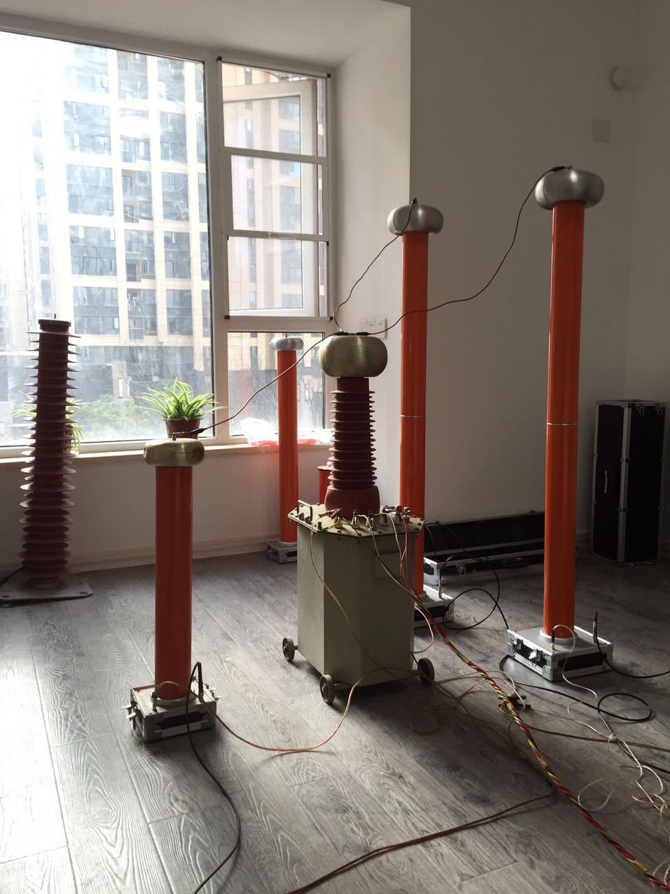 4、順時針勻速旋轉調壓器手柄,進行升壓,并密切注意儀表指示以及試品的情況;