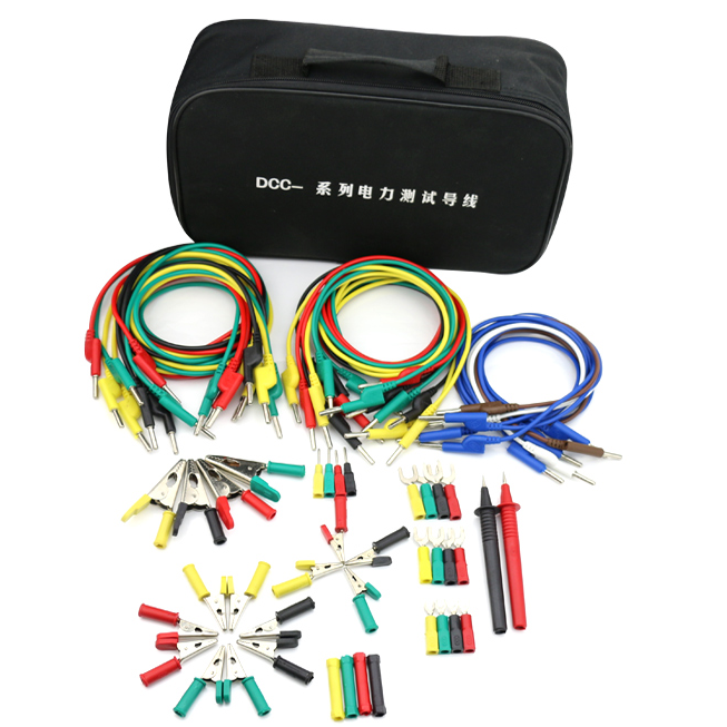 專用測(cè)試導(dǎo)線包外型美觀。試驗(yàn)線由專用插頭、連接導(dǎo)線、絕緣手柄三部分組成。(套)導(dǎo)線本體由電流型、電壓型、普連線及各規(guī)格品種多功能接插件等組成,并采用牛津箱包作為包裝供貨。(套)導(dǎo)線本體長(zhǎng)度可按需要制作。是繼電保護(hù)、電氣試驗(yàn)專用的一系列測(cè)試導(dǎo)線,它適用于現(xiàn)場(chǎng)、試驗(yàn)室及其它試驗(yàn)場(chǎng)所