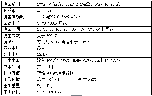 儀器采用鋰電池供電,試驗電流可達100A,測量準確。