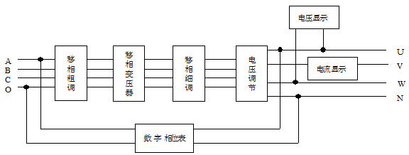 本移相器是采用變壓器移相原理設(shè)計制造的,其基本工作原理如下方框圖: