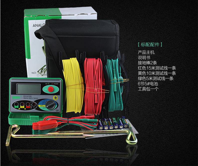 一、DY4100數(shù)字式接地電阻測試儀是摒棄了傳統(tǒng)的人工手搖發(fā)電工作方式,采用先進(jìn)的大規(guī)模集成電路,應(yīng)用DC/AC變換技術(shù)將三端鈕、四端鈕測量方式合并為一種機(jī)型的新型數(shù)字接地電阻測試儀。適用于電力、郵電、鐵路、通信、礦山等部門測量各種裝置的接地電阻以及測量低電阻的導(dǎo)體電阻值;本表還可測量土壤電阻率及地電壓。