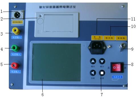 4---B相泄漏電流輸入端;5---C相泄漏電流輸入端;6---大屏幕液晶顯示器;